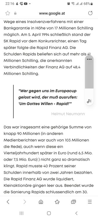 Mein spezieller Freund aus dem Schimmelchannel hat mal wieder Dünnpfiff abgelassen. Ich sag mal so ... Zur Stadionfinanzierung ohne Zuschuß: Zum Thema Insolvenz und guter Umgang mit Kleinanlegern: Der Spruch im letzten Artikel ist super. Vaduz schreit heute noch "Um Gottes Willen". Und eigentlich hab ich immer gedacht der Typ von MAD heißt Alfred E. Neumann. Falsch gedacht - Helmut Neumann (Rapid). Sie sind halt "mad" diese Schimmligen. Abschließen möchte ich mit zwei besonderen Grüßen an die Theorie des Dünnpfiffs.9 likes -
