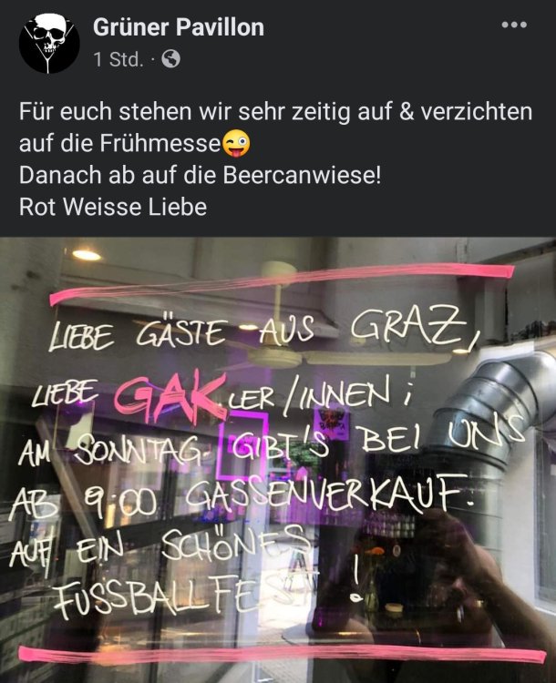 Beim Umstieg in Salzburg gab es gerade eine Durchsage des Schaffners…. “Alles Gute an die GAK-Fans - ich hoffe wir sehen uns in der Bundesliga“37 likes -