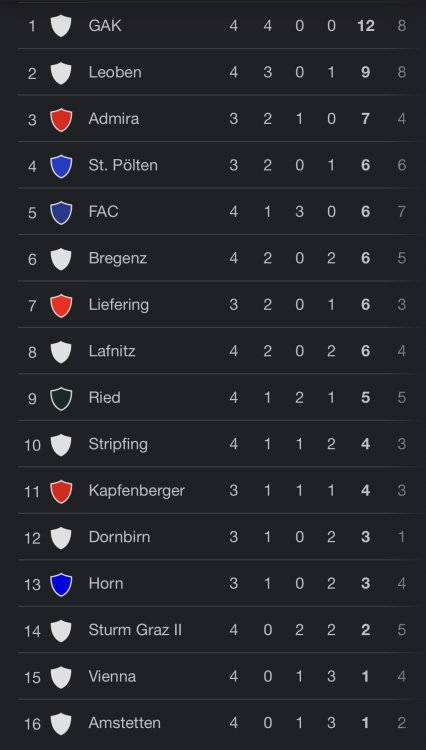 Die Admira verliert spät 0:1 in Dornbirn…zeigt wieder, dass es dort kein Honiglecken ist Punkt(e) mitzunehmen. Darüberhinaus für uns auch gut, dass wieder ein potenzieller Konkurrent Punkte liegen gelassen hat. Morgen noch Kapfenberg die Daumen drücken und dann könnte das der 2. Spieltag ein suite nach unserem Geschmack sein.12 likes -