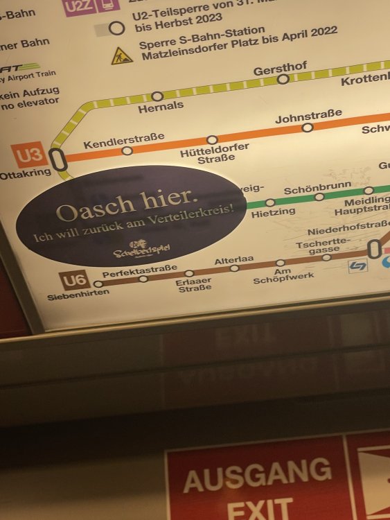 Ist das Pickerl neu(er)? Ich hab das irgendwie glaub ich noch nie gesehen und feier das mit der Baden-Württemberg-Anspielung voll. Es ist eh ein Wunder dass das noch da war. Die Wiener Linien sind beim säubern ja eigentlich recht genau zumindest in Stadionnähe. Der Ort war auch sehr passend, es war die U4.16 likes -