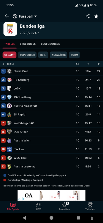 Ich finde es seltsam wie auch die Leistungen der einzelnen Spieler schwanken. Andrade, Ziereis und Flecker waren bis vor kurzem ganz gut drauf. Die gute Form ist verloren gegangen. Talovierov und Bello waren in Toulouse wahrscheinlich die Stärksten. Heute waren sie vermutlich die Schwächsten. Ich hoffe dass wir in der LSP einen guten Schritt nach vorne machen. Die Mannschaft spielt sicherlich deutlich unter ihren Möglichkeiten. Der Blick auf die Ausbeute ist okay. Heute wie letzte Saison Platz 3 nach 10 Runden. Aktuell liegen wir bei 18 Punkten. Letzte Saison waren es 19 und in der 11. Runde kam durch ein 0:3 gegen Hartberg keiner mehr dazu. Die taktische Aufstellung war heute übrigens anders als zuletzt. 3-4-3 statt 3-4-1-2. Zulj rechts am Flügel und Ljubicic in der Mitte. Am Ende war es dann wieder ein 4-2-3-1 wie zu Beginn der Saison. Ich bin gespannt in welche Richtung es taktisch geht. Weil eines ist klar - wir müssen vorne wieder gefährlicher werden und mehr Tore schießen.11 likes -