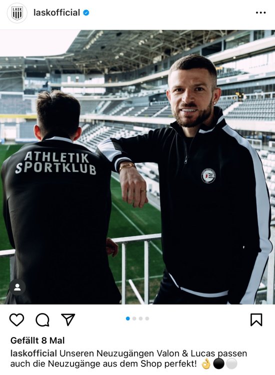 Ich finde das Foto gerade nicht, aber ich habe ein Bild mit u.a. Köglberger und anderen Spielern am alten LASK-Platz vor Augen, wo sie lässig an Autos lehnen. Da haben sie genau so einen Trainingsanzug an und ich meine mich zu erinnern, dass man da genau diesen Rückenaufdruck auch erkennt - könnte eine Hommage sein. Mir gefällt's enorm, hat für mich einen richtigen 70er-Trainingsanzug-Flair. Goldketterl und lange Mähne dazu und ab auf den Rasen. Edit: Foto gefunden, ein bisserl trügte mich die Erinnerung, beim dritten Spieler von rechts meine ich aber, einen angedeuteten Rückenaufdruck zu erkennen.10 likes