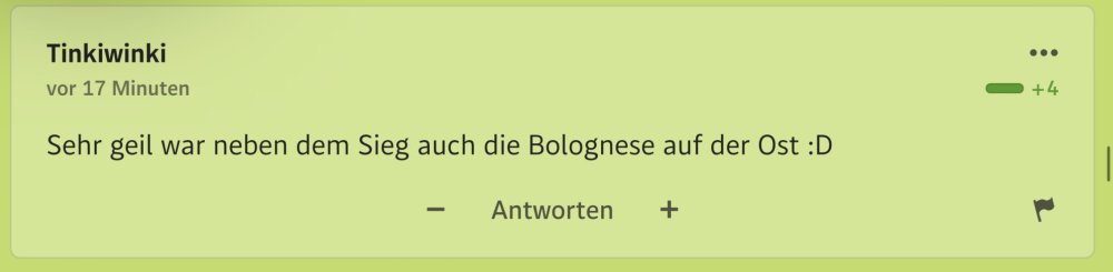 Nach einer Nacht drüberschlafen ein kurzes Resümee. Erste Halbzeit sah ich unser Team schon dagegenhalten, aber da war RB mehr als eine Klasse besser. Sehr giftig und haben alle unsere Versuche schon im Keim erstickt. Schnegg war in der ersten Halbzeit natürlich Schatten, in der Zweiten war da aber auch viel Licht. Über die gesamte Spielzeit hätte uns Salzburg immer wieder ins Nirwana schießen können, aber es gibt mehrere erwähnenswerte Dinge auf unserer Seite: 1.) Unser Wille und dementsprechender Glaube. Also "Hängen" lassen haben wir uns gestern in keiner Sekunde. 2.) Die von einigen Postern als Unding bezeichnete Doppel 6 hat uns gestern den Arsch gerettet. Gott sei Dank denkt Ilzer anders als ein paar dieser Gesellen hier. 3.) Und durch die Systemumstellung hat auch Ilzer etwas widerlegt. Er kann Pläne im Spiel ändern. 4.) Körperlich waren wir gegen Spielende besser beinand. Summasummarum ein glücklicher Punkt, aber nichts dabei zum Schämen.15 likes