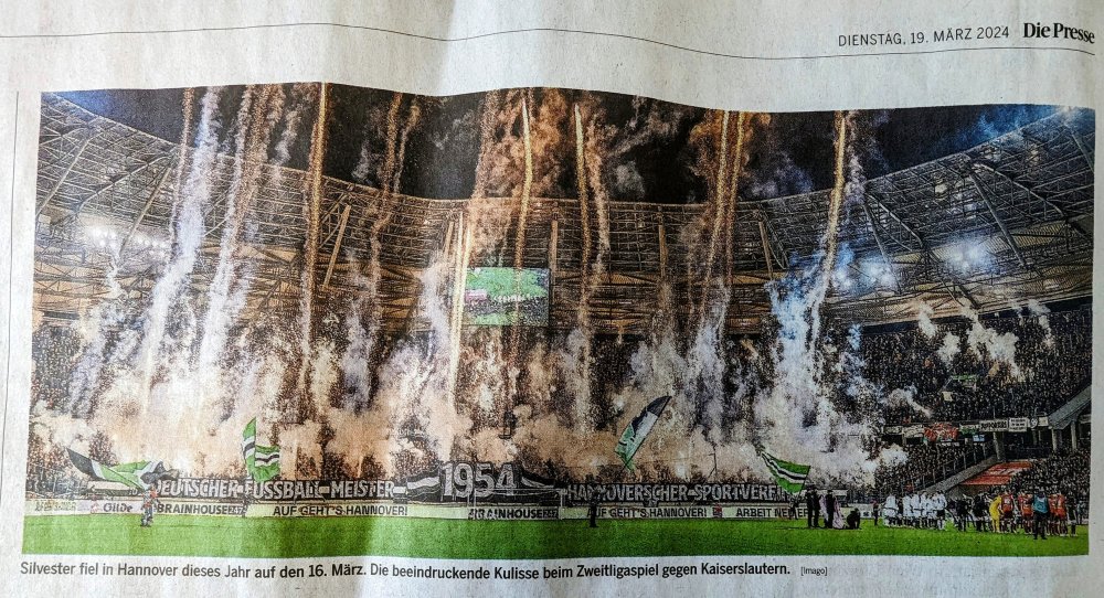 Das kann man ned erfinden, in da 2ten germanischen Liga ist diese Pyroaktion plötzlich eine "beeindruckende Kulisse" Da man ganze Artikel ned verlinken darf: in der Presse wird heute die Atmosphäre in den Stadien, sowie die großen Namen in der 2ten deutschen Buli beworben. In Hannover wird diese Aktion von "eingefleischten 96er zelebriert" und nicht von "Fußballchaoten, Hooligans...".34 likes
