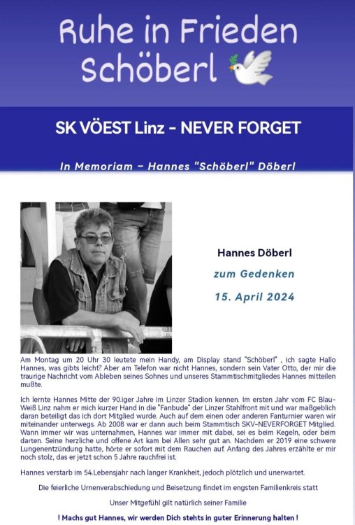 In MemoriamBlaueDonau and 14 others liked ein Thema by MetzgerSKV Hannes “Schöberl” Döberl - Ruhe in Frieden - Du warst für mich immer ein prominenter Blau-Weißer!15 likes