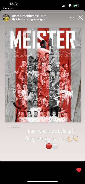 Gerade von der Feier nach Hause gekommen (die geht gefühlt noch bis Dienstag weiter)…es ist für mich noch absolut unbegreiflich was da heute, diese Woche, diese Saison passiert ist. Nach alldem was vor 336 Tagen in Dornbirn passiert ist hätte ich es nicht für möglich gehalten, dass wir es mit einer „Jetzt-erst-Recht“-Mentalität schaffen. Eines ist gleich, wie vor 336 Tagen…Menschen liegen sich in den Armen, Menschen weinen…diesmal vor Glück…der eine wird ganz leise, der andere ganz laut…einer hat man heute wieder ganz genau gesehen: DER GAK IST WIEDER DA! Eine Statue für Didi Elsneg und Gernot Messner für das was sportlich erreicht wurde mit dem, was die Herren vom Vorstand rund um René Ziesler und Matthias Dielacher finanziell aufgestellt haben. Eine Statue (und eine Vertragsverlängerung) für Marco Perchtold, der das Profitum mit 28 Jahren (!!!) aufgegeben hat um seinen Herzensklub zurück in die Bundesliga zu führen. Eine Statue für die gesamte Mannschaft, die die ganze Saison als EINHEIT unterwegs war, die nicht die beste Mannschaft der Liga war, die nicht die größten Namen, dafür die richtigen Charaktere hatte. Eine Statue für unsere Kurve rund um die Capos für das, was die letzten Jahre entstanden ist und noch weiter entstehen wird. Geniessen wir die Zeit an der Sonne, genießen wir den Start in unsere Meisterwoche mit dem Höhepunkt am Freitag gegen Horn…Feiern wir als ob es kein Morgen gäbe…WIR haben uns das verdient 🔴⚪️21 likes