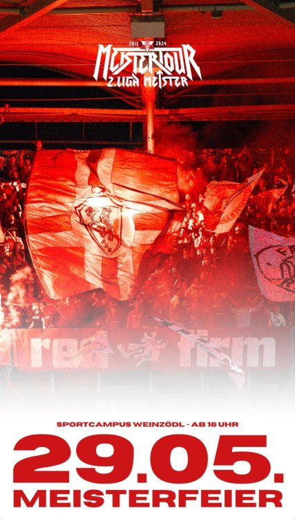 MEISTER 2. LigaBiancaRossa and 15 others liked ein Thema by LOK III Ich trage natürlich auch seit Sonntag 12:20 ausschließlich GAK-Mode. Ich habe aber eher das Gegenteil von dir erlebt. Ich wurde angesprochen, mir wurde gratuliert und aus dem Auto ein Daumen hoch und ein "Meister, yeah!!". Ich bin von der positiven Resonanz nicht überrascht. Wir haben es geschafft uns durch harte Arbeit, mit aufgestrickten Ärmeln aller Beteiligten absolut positiv zu positionieren. Kein Hochglanz-oder Kommerzklub, ein Klub der Mitglieder, wo ehrlich und mit Hertblut am Erfolg gearbeitet wird. Natürlich gibt es ein paar mißgünstige, verbohrte Schwarze, aber die Mehrheit hat großen Respekt und Bewunderung vor dem mühsamen und steinigen Weg, den wir hinter uns haben. Die mediale Berichterstattung war auch sehr positiv, unser Weg sorgt für Bewunderung in ganz Österreich und strahlt auch über die Landesgrenzen. Ich bin so stolz ein Roter zu sein!16 likes