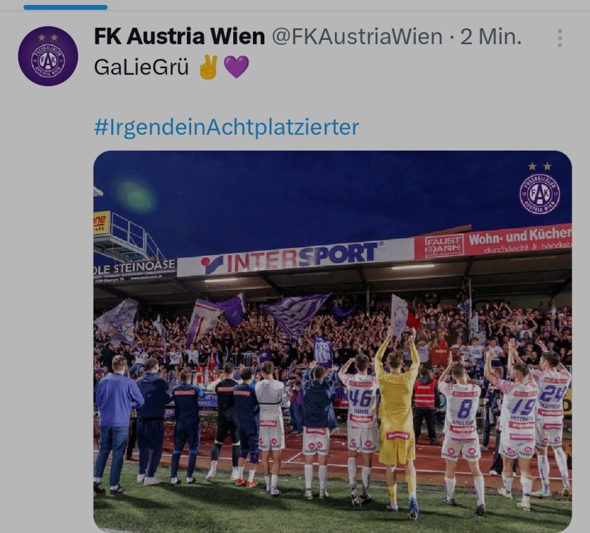 So: gschu, gschu wieder zurück in UNSEREN Channel, meine roten Schäfchen! Nur weil wir sportlich aufgestiegen sind, muss unser geistiges Niveau nicht sinken. Zeigt Größe! Die Fahnenaktion war scheisse und ein Haufen Leute hat es gefeiert. War so. 50 Meter davor und danach, hat es niemand mitbekommen. Wir waren im Ausnahmezustand und ein paar hat's den Sehnerv g'schossn. War so. Ich war bei der 50-Meter-danach-Fraktion, also schon näher am Stadion, und hab es aus den Medien erfahren. Die Deppen haben wir auf beiden Seiten. Und keine Aktion hebt eine andere Aktion auf. Man kann Dummheit nicht mit Dummheit bekämpfen. Also, ab nach Hause 😉👍🏻 PS: für alle Spaßbefreiten unter uns, ich schreibe natürlich niemandem vor, wie oder was er schreiben soll. Ich möchte nur zum Ausdruck bringen, dass ICH mich ganz klar von Gewalt und Vandalismus jeglicher Art distanziere und nicht mit solchen Menschen über einen Kamm geschoren werden möchte!12 likes