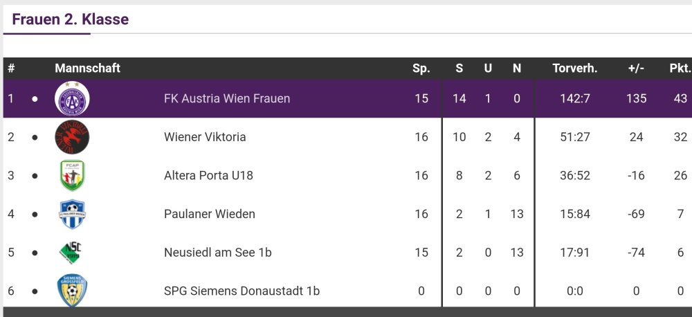 Nicht das hier jemand den Unsinn glauben würde, der sich auch nur 3 Minuten mit unseren Frauen beschäftigt hat.. nur: - Landhaus wurde keinesfalls vernichtet sondern hat es nach Ende der Spielgemeinschaft eine Saison allein probiert um anschließend mit dem FAC eine Spielgemeinschaft einzugehen - 2017/18 gab es zwar die FK Austria Wien Ladies in der Wiener Liga (davor und danach Landhaus 1c) - 2018/19 startete allerdings der erste Akademie Jahrgang in der 2.Klasse und somit ganz unten im WFV. - 2019/20 startete bedingt durch Umstrukturierungen beim WFV die Akademie Mannschaft bereits in der Landesliga und die Akademie 1b in der 1.Klasse, denn die 2.Klasse wurde gestrichen und diese gibt es erst seit 2022/23 wieder beim WFV Die Ergebnisse 2018/19 haben vmtl ihres dazu beigetragen, dass der Klassenausschuss diese Entscheidung traf. - Zum Ende der Spielgemeinschaft mit Landhaus, hatte sich diese Mannschaft in die 2.Liga gespielt wobei, ja hier hat man dann den Landhaus BL Startplatz dann mit dem 2.Liga Startplatz eingetauscht. Tatsachensubstrat aus den ursprünglichen Behauptungen somit wenig übrig...6 likes