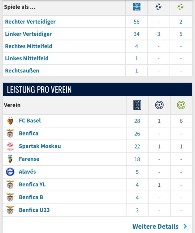puh also das ist eine Ansage. Wenn man sich die Vita dieses Spielers anschaut hat man da wohl das Maximum an verfügbaren rausgeholt. Alleine die Tatsache dass er bei Benfica, eines der besten Ausbildungszentren der Welt, ausgebildet wurde, macht Lust auf mehr dazu universell einsetzbar. Nach 2 Kreuzbandrissen zuletzt wenig gespielt, letzte Saison nur 4 Spiele aber ja ansonsten wäre so ein Spieler halt auch nicht möglich. Sturm hat gestern einen Russen von LOK verpflichtet, da sehe ich eine Leihe eines Portugiesen aus Russland weit weniger problematisch. Ich weiß auch nicht ob eine KO gehen würde, habe das Zitat von Schicker gestern noch gefunden: P.S. Im Stadion dürften die Treppen rot werden14 likes