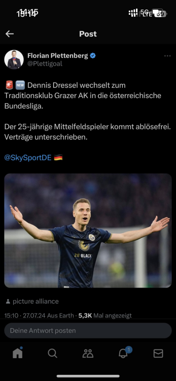 Gratuliere zum Dressler Transfer. Da bin ich tatsächlich überrascht. Der bringt jedenfalls Tempo und Stabilität in unseren Defensivverband. Extrem wichtige Personalie. Hoffentlich kann er unser Spiel präziser, ideenreicher und schneller machen. Zuzutrauen ist es ihm. Alles Gute und willkommen in Graz!10 likes