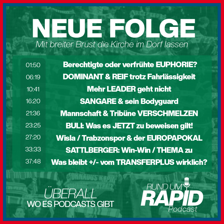 Rund um Rapid Podcastrauchi1899 and 8 others liked ein Thema by rundumrapid Eine besondere Woche liegt hinter uns Rapidfans und damit geht in Wien West Hütteldorf selbstverständlich automatisch einher, dass sich eine gewisse Euphorie breit macht. Berechtigte oder verfrühte Euphorie? Meine Einschätzung zu dieser Frage, wie die zwei besonderen Heimsiege gegen Wisla Krakau & Sturm Graz in einer Woche einzuordnen sind, den Aussichten im Europapokal, was es jetzt in der Bundesliga für Rapid zu beweisen gilt, der "abgearbeiteten statt aufgeschobenen" Situation um Sattlberger und eine Daumen mal Pi Rechnung dazu, wie viel ungefähr wirklich an mutmaßlich 6,5 Millionen Euro Transferplus übrig bleiben könnte, hört ihr in Folge 77 Rund um Rapid Podcast. Als Tenor kann ich hier schon vorwegnehmen: Jeder Rapidfan verdient es aktuell, eine gewisse Euphorie zu verspüren und das ist grundsätzlich auch ein gutes Zeichen, weil es bedeutet, dass bereits Positives in dieser Saison geschaffen wurde. Jedem sollte aber auch klar sein, das waren erst die 1. 4 Pflichtspiele. Soweit so gut also, aber jetzt geht es mit schwierigen sogenannten Pflichtaufgaben in der Liga, gepaart mit unseren geliebten europäischen Nächten unter der Woche, erst so richtig los und es gilt zu beweisen, dass der SK Rapid den nächsten Schritt gemacht hat…und im Begriff ist, zum nächsten anzusetzen. Ich wünsche euch gute Unterhaltung & verbleibe wie immer: In unbändiger Liebe zu Rapid! Euer Maximilian9 likes