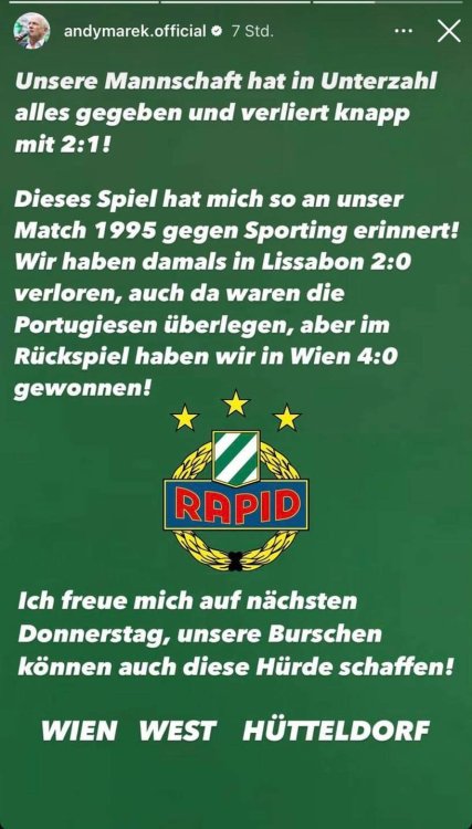 ich bin heute sehr stolz auf die Mannschaft, im Rückspiel ist noch was möglich, was viele leider vergessen, der Gegner heißt immer noch Braga, der Beginn war eine Ankündigung der Apokalypse, es ist erst das Hinspiel und ohnehin ein Bonusspiel ich entschuldige mich falls ich heute ungut war, da sind mit mir die Emotionen durchgegangen aber nachdem die letzten Wochen traumhaft waren zerfleischen wir einige Spieler wegen 1 schlechten Aktion, das tut mir im grünen Herzen weh, ich dachte wir sind alle zusammengewachsen48 likes