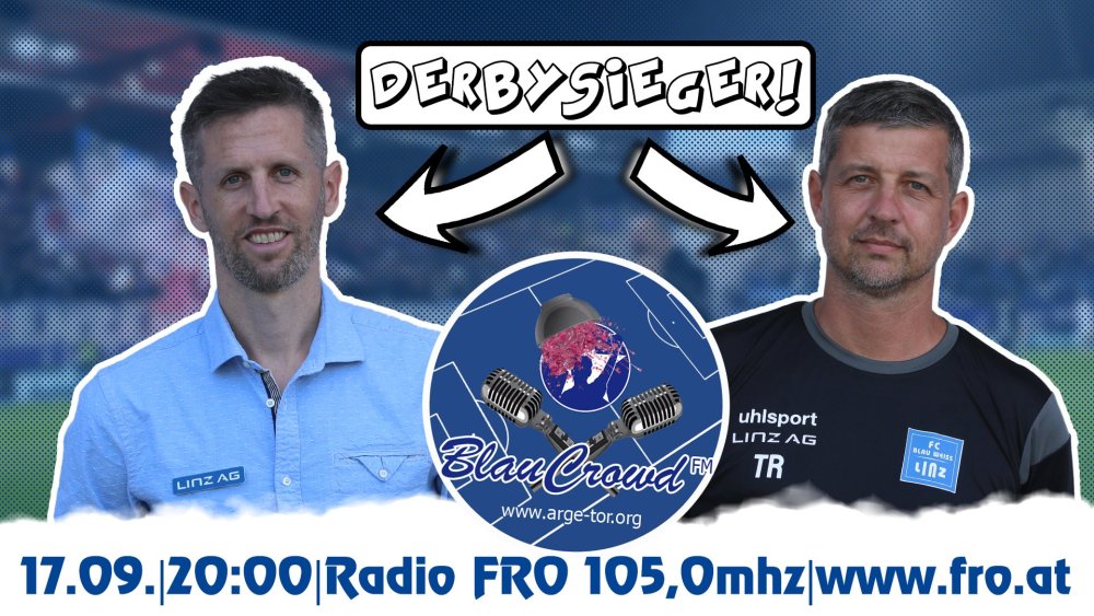 In der 143. Ausgabe der geilsten Radioshow dieser Galaxis dürfen wir zwei Derbysieger begrüßen. Mit Trainer Gerald Scheiblehner und Sportdirektor Christoph Schösswendter nehmen die Architekten des blau-weißen Erfolgsteams neben uns im Radio FRO Studio Platz. Welchen Plan sie beim Linzer Stadtmeister verfolgen um die Erfolgswelle weiter zu reiten, werden uns die beiden am kommenden Dienstag verraten. BlauCrowd fm #143 17.09. | 20:00 Radio FRO 105,0 mhz | www.fro.at Nachzuhören unter www.arge-tor.org10 likes