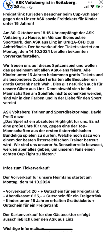 Aber auch ganz ehrlich - einen Tag nur vom Verein geben für die Anmeldung ist halt auch mehr oder weniger ein Schuß ins Knie... das gabs auch noch nie so in dieser Form. Schön das der Verein so ein tolles Angebot für die Fans stellt, aber man muss den Leuten auch ein wenig Zeit geben für die Entscheidung bzw. Anmeldung. Viele sind vielleicht nachts arbeiten und kommen somit gar nicht zum Lesen der Neuigkeiten oder müssen sich erst mit Freunden absprechen. Nicht alle sind so wie wir hier im ASB und immer online...Daher versteh ich diese Taktik ehrlich gesagt überhaupt nicht - diese Kritik muss ich halt auch mal aussprechen.16 likes
