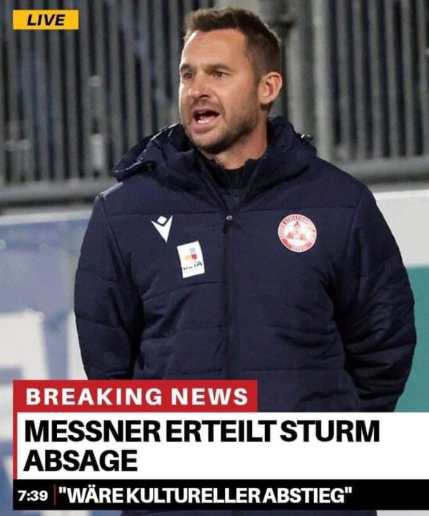 Wir sollten einfach einmal lernen, die Meinung anderer zu akzeptieren, egal in welche Richtung. Messner hatte seine Stärken und seine Schwächen. Ich bin dankbar dafür, dass er bei uns war, ich bin aber auch dankbar dafür, dass jetzt Poms da ist. @ topic: So wie es aussieht, wird ja Sturm der gesamte Trainerstab abhanden kommen, bin da mal gespannt, was nachkommt. Am Besten wäre ja ein Engländer oder Skandinavier, da sind die Verständnisschwierigkeiten mit der Mannschaft am geringsten Die Schwoazen scheffeln mittlerweile Millionen mit ihren Transfers, jetzt müsste sich ja bald einmal ein Stadion ausgehen, oder?7 likes -