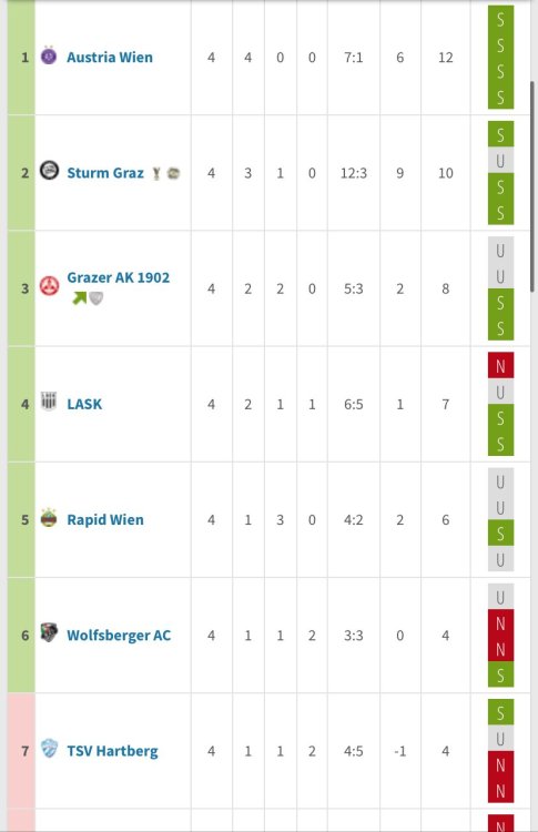 7. Sieg in Folge, ex aequo mit Platz 2, Punkteschnitt 1,92, zehn Punkte über dem Strich. Lasst Helm und sein Team arbeiten. 💜 Vor allem bringt dieses Team so vieles mit, was es braucht, um erfolgreich zu sein: auch schlechte Spiele gewinnen, kämpfen, eine Führung über die Zeit bringen, aus Standards Tore machen, mit Jokern Schwung bringen. Wir haben heute durch einen einstudierten Standard gewonnen, wo Malone perfekt geblockt hat, zugleich in der ganzen Saison noch kein Gegentor aus Standards. Das ist klar Verdienst des Trainerteams. Auch ist es Verdienst des Trainerteams, es bei einem so großen, eigentlich zu großen Kader zu schaffen, dass man den Eindruck bekommt, dass da wirklich alle zusammenhalten. Heute ist unser Stamm-IV ausgefallen und sein Ersatz spielt als würde er nie was anderes machen, köpft das Siegestor, wird nach Abpfiff von allen Kollegn geherzt und abgebusselt. So funktioniert Team. Zum Spiel: sehr gut gestartet, Hartberg musste nach 15min schon seine Formation an uns anpassen und hatte zwei Gelbe. Ab dann, im 3er-Aufbau, wurden sie aber immer stärker und es war sehr ausgeglichen, phasenweise mit wenig Zugriff von uns gegen diesen Spielaufbau. Dann aber in Halbzeit 2 klar Überhand gewonnen, das Tor lag immer mehr in der Luft, zugleich hinten kaum was zugelassen. Insofern ein verdienter Sieg. Schade, dass Fitzi in Linz fehlt, aber mei, dann kommt eben Gruber in die Elf und die Jungs werden wieder kämpfen wie die Löwen. P.S.: Schon jetzt ist fix, dass wir als Dritter überwintern. Mindestens. (Edit: stimmt nicht, Vierter ist fix wg. Nachtragsspielen der Salzburger)9 likes