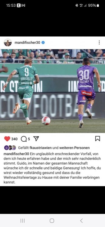Was für furchtbare Nachrichten - gute Besserung Burgi! Hauptsache wieder gesund werden, da ist der Fußball natürlich Nebensache. Ich würde euch bitten aktuell von Spekulationen Abstand zu nehmen und so wie in der Rapid-Presseaussendung angemerkt "die Privatsphäre von Guido Burgstaller und seiner Familie zu respektieren." Die Polizei wird das hoffentlich aufklären.38 likes