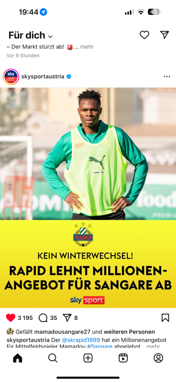 eine frechheit, dass transfermarkt sangare nur mit 4,5mios bewertet, wenn sogar die angebote um die 8mios sind, die wollen rapid systematisch kleinhalten..19 likes -