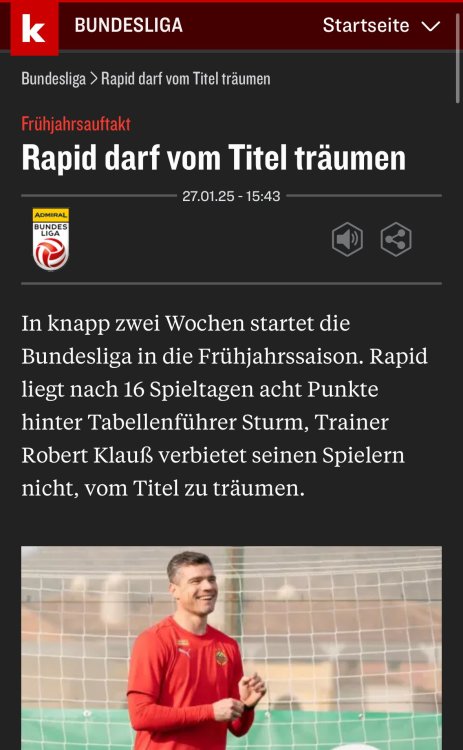 Im Prinzip hat uns heute derjenige den Sieg gerettet, der es im Herbst nie gemacht hat…nämlich der Torwart. Irgendwer hat geschrieben ob wir für die Ablöse von Wiegele zusammenlegen - ich bin definitiv dabei! Ansonsten der zu erwartende, erbrunzte Dreier…besser kannst in das Frühjahr nicht starten, vor allem weil du Klagenfurt und Wattens auch gleich unter Druck gesetzt hast. Was mich noch zuversichtlich stimmt…es kommen noch Jovicic und Jano von ihren Sperren zurück und bald sind auch Cipot und Kleinheisler wieder richtig matchfit…dann sollte es mit der spielerischen Komponente auch wieder besser ausschauen, Satin wäre dann für die 6 wieder verfügbar…alles kleine Puzzlestücke die helfen werden sich nach oben zu orientieren. Was man so hört scheint es bei Schriebl nicht die ganz große Katastrophe zu sein…man wird halt das MR abwarten müssen.16 likes -