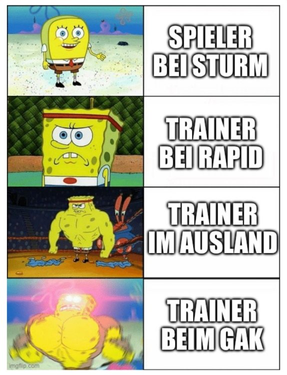 Es wurden schon so viele Vorschusslorbeeren verteilt für Spieler, die uns den Arsch retten werden. Kaum einer wurde dem dann auch nur ansatzweise gerecht. Jetzt wurde so dermaßen viel Negatives und eine Grundabneigung gegenüber dieser Person geschrieben, dass - Gesetz der Logik - er jetzt überzeugen wird. Oder liege ich da falsch... Im Ernst, wenn ICH an seiner Stelle wäre, würde ich mich vor die Mannschaft stellen und sagen: "Wollt ihr mit einem 'Schwoazen' Trainer absteigen? OK. Dann macht das. Euer Bier. Wollt ihr mit mir die Klasse halten, dann nehme ich in Kauf, dass wir das nächste Derby gewinnen und mich Leute anspucken, die mich mal gefeiert haben." Ich für meinen Teil bin überzeugt, dass der Ferdl sich seiner Verantwortung bewusst ist. Und er wird sich sicher nicht in die Suppe spucken lassen. Es geht um alles! Den GAK zu einer ernstzunehmenden BL Mannschaft zu führen muss das Ziel sein. Das wird er schon wissen. Das wird er auch wollen. Zeigen wir ihm am Samstag was es bedeutet, ein Teil dieses wunderschönen Vereins zu sein!33 likes