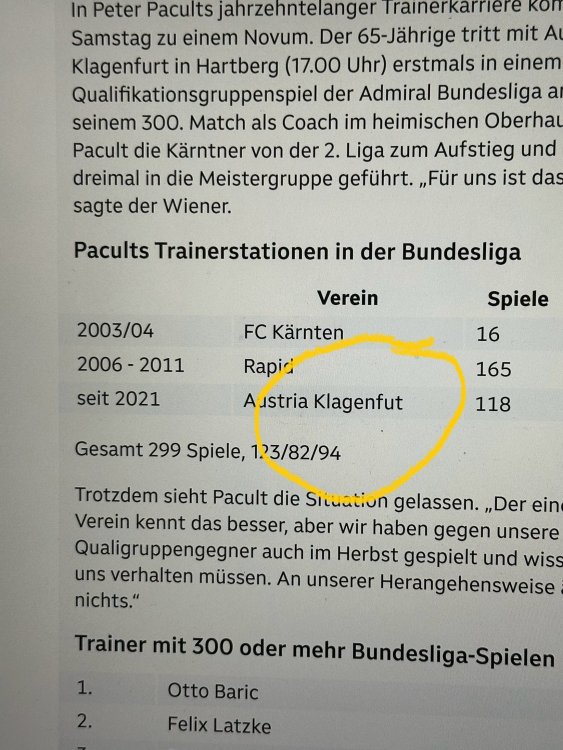 Eh. Etwa 180 Spiele in den höchsten beiden Spielklassen, unter den unterschiedlichsten Trainern und Sportdirektoren. Stammspieler in der Mannschaft, die zumindest 2 Jahre lang zur absoluten Spitze der 2. Liga gezählt hat und die Liga dann mit 10 Punkten Vorsprung gewonnen hat. Aber es reicht natürlich nicht für die 2. Liga. Weil auron und robo und a paar andere Wirtshausexperten das diagnostiziert haben.10 likes