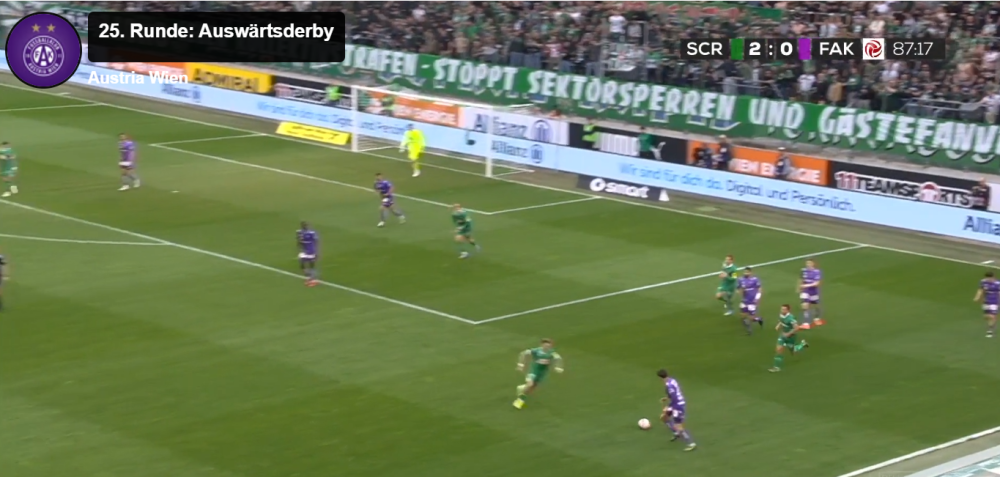 Hier besser verortet... Als im Cup Handl und Tin kamen, blieben sie hinten. Also auch das ist nicht fix... Naja, ganz so schlecht kann es auch nicht gewesen sein, immerhin hätte er die beste Torchance der zweiten Hälfte eingeleitet. Was ist den anderen Stürmern in dieser Phase gelungen? Da sind ja das ganze Spiel lang vielversprechende Angriffe versandet. Vielleicht ist es manchmal einfach erforderlich auf gut Glück etwas zu probieren... Vor Gruber hast du hier öfter gelesen? Wirklich? Das muss ich verpasst haben... Vor Raguz hat ihn am Sonntag Trainer Helm gehoben und der ist nun wirklich bei allen Trainings dabei sowie bestens informiert. Ich vermute, dass du seine Entscheidungen nicht in Frage stellst, wenn gerade er das so gehandhabt hat? Das Rennen zwischen den beiden für den Platz des vierten(!) Stürmer im Kader dürfte jedenfalls denkbar knapp sein und mir sei noch die Frage erlaubt, welche Limitierungen man bei Raguz aktuell denn nicht erkennen könnte? Die 9 Ballverluste von Aleksa sind so schlimm? https://www.sofascore.com/football/match/austria-wien-sk-rapid-wien/fQsdU#id:13629516 Aleksa hat in 31min: 9 Ballverluste bei 17 Ballkontakten, das sind 53%. Malone hat in 90min: 14 Ballverluste bei 28 Ballkontakten, das sind 50%. Prelec hat in 59min: 10 Ballverluste bei 20 Ballkontakten, das sind 50%. Und anstatt zu feiern, dass ein 17-Jähriger sich was traut, das Offensivspiel belebt und die doppelte Rate an Ballkontakten bei gleicher Qualität (sorry, 53% statt 50%...) wie Stürmer mit Millionenpreisschildern liefert, kritisieren wir seine technischen Unzulänglichkeiten? Nein... das ist nicht meine Art, sorry. So jetzt Relive... weil es mich nervt. Relevante Szenen von Aleksa: https://fk-austria.at/news/re-live-matches-in-voller-länge/bundesliga-2425 59:30 - Einwurf Ranftl, er findet einfach niemanden, sucht sekundenlang. Aleksa kommt aus dem zentralen Strafraum zur Torlinie gelaufen, wird dort von Ranftl gefunden, lässt mit der Ferse auf Barry tröpfeln, der kann den (schwierigen Ball) mitnehmen und versucht Perez einzusetzen. Super Einsatz, super Laufweg, gute Ballverarbeitung. ... in der Szene kommt noch Malone zum Ball, spielt ihn in den leeren Raum zur Rapid-Verteidigung. Szene vorbei. 62:25 - SSR mit weitem Abschlag auf Aleksa, leider mehr oder weniger genau auf den letzten Mann von Rapid, Aleksa war schnell, aber noch nicht da um das Duell ernsthaft führen zu können. Kein zweiter Ball, weil ins Out geklärt. 62:35 - Einwurf von Malone auf Aleksa, leider etwas zu wenig weit in den Raum, Bolla klärt, was den Kommentator sogar zu einer Würdigung für dessen Technik veranlasst. Da wäre ggf. mehr zu holen gewesen, war aber keine einfache Aufgabe und Bolla (immerhin ein Wolverhampton/Servette-Transfer mit mehr Europacup-Spielen als Aleksa Jahre alt ist) hat das gut gemacht. 64:00 - Aleksa wird furchtbar schlecht angespielt, der Pass geht viel zu kurz direkt zu Auer. Aleksa geht in den Zweikampf und holt das Foul für die Austria heraus (also das Maximum). 67:15 - Aleksa wird auf engem Raum angespielt und von zwei Rapidlern bedrängt. Er kann den Ball behaupten und spielt zurück auf Wiesinger(?). Mehr war nicht drin. 72:25 - Nach Abschlag von Hedl köpft Handl auf Aleksa, der will das Spiel schnell machen und auf Ranftl tröpfeln lassen. Zu kurz, Ranftl muss im Zweikampf erobern und den verliert er. Da wäre bessere Technik oder mehr Ruhe gut gewesen. Solche Szenen/Fehler gab es aber im Minutentakt und gerade Ranftl spielte viele solche Fehlpässe in der Phase. Zur Einordnung spielte Drago hier unbedrängt den ruhenden Ball auf den gegnerischen Stürmer: 81:35 - langer Ball von Galvao auf Aleksa, unerreichbar aber gerade noch berührt (Ballkontakt + Ballverlust). 82:45 - Galvao schickt Aleksa am linken Flügel mit keinem einfachen Ball: Aleksa erläuft ihn, dennoch, gewinnt den Zweikampf und hat Ballkontrolle in der Nähe der Cornerfahne. Flanke an den 5er, wo leider die Raumaufteilung keinen Stürmer parat hielt (Ballkontakt + Ballverlust) - aber sehr gute Szene und Bolla stehen gelassen. Das war die gefährlichste Flanke seit Aleksa am Platz war. 83:20 - Raguz spielt Aleksa aus kurzer Distanz am Strafraum an. Erst will er schießen, bricht die Bewegung aber aufgrund guter Deckung ab. Der Ball wird ihm weggespitzelt... klarer Ballverlust, wie er ganz vorne eben vorkommt. Klar ginge da mehr, zeigte aber sonst auch keiner besser an dem Tag. 84:30 - Malone in einem sehr schwierigen Zweikampf am 5er, kann irgendwie den Kopfball spielen (aber nicht ZU Aleksa), der bekommt noch einen Fuß vor den Rapid-Verteidiger und spitzelt den Ball in den Raum (wo ihn ein zweiter Rapidler nimmt). Für mich ein gewonnener Zweikampf (sofern überhaupt einer), aber in der Statistik ggf. ein Ballverlust. Tatsächlich war in der Szene aber rein gar nichts für ihn möglich mit einem Ball den er eigentlich nicht erreichen kann gegen zwei Verteidiger. 87:15 - Aleksa wird bei einer Defensivaktion mit einem schleichenden Pass angespielt und sollte hinten an der Seitenlinie eine Lösung finden. Weit und breit keine Anspielstation, der Rapidler gewinnt den Zweikampf und klärt den Ball ins Out. Ja, das ginge besser, aber dort ist nicht seine Position und die Aktion auch nicht seine Stärke - zudem eben auch keine Unterstützung. Nichts anbrennen lassen... 87:50 - Aleksa wird am Flügel eingesetzt, vernascht alle Verteidiger und bringt die tolle Hereingabe auf Malone (der leider alleine vor dem Tor vertändelt). Top gelöst und die zweite gefährliche Szene (von zwei seit seiner Einwechslung) die auf seine Kappe geht. 90:15 - Langer Abschlag von SSR, Raguz kommt irgendwie dran und spielt einen unkontrollierten Kopfball aus kurzer Distanz auf Aleksa. Der hat Probleme bei der Verarbeitung und verliert den Ball. Der Rapidler kann ihn aber auch nur 30 Meter ins Out dreschen und will kein Risiko eingehen. 91:40 - Langer Ball von Galvao die Outline entlang, den Aleksa noch retten kann (vor dem Out). 