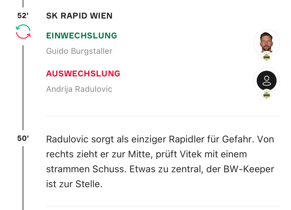 Radulovic war wohl zu torgefährlich, schnell austauschen, bevor ihm vielleicht noch ein Tor gelingt. Aber freu mich schon auf morgen Abend, da les ich dann wieder „aber wenn wir die nächsten 5 Spiele gewinnen…“13 likes