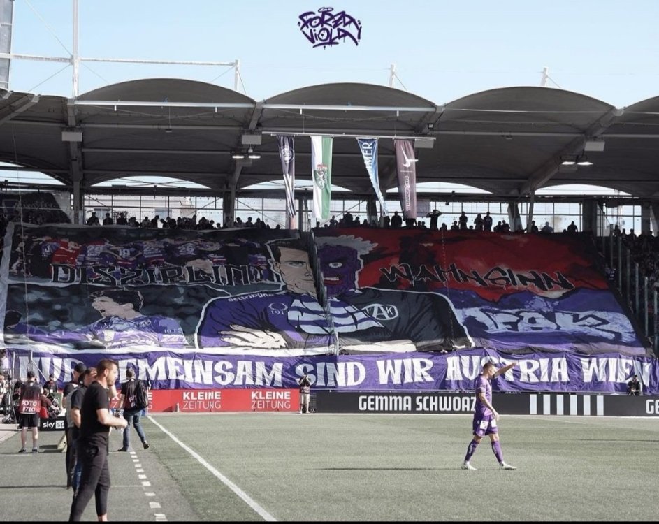 Also so retour betrachtet....wenn die Grazer verlieren, aber dann so richtig. Die haben voll ausgefasst auf allen Ebenen.... 0:1 am Platz Ein Bauernschweine Pickerl, dass es nicht nur auf die Interview Wand sondern auch ins Fernsehen und in Folge in die Zeitungen schafft.....irgendwer wird da zum Ritter geschlagen werden müssen....der, der das gmacht hat ist jetzt a "Sir"....weil des is ultimativ...Pickerlszenemäßig ist das ja kaum noch zu toppen... https://www.kleinezeitung.at/sport/fussball/oesterreich/bundesliga/sksturm/19627102/austria-fans-klebten-bauernschweine-sticker-auf-die-interview-wand https://www.heute.at/s/sturm-fans-wueten-ueber-falsches-logo-im-live-tv-120105137 https://www.krone.at/3768862 https://www.meinbezirk.at/graz/c-sport/sturm-aergert-sich-ueber-schiri-und-streich-der-austria-fans_a7285815 Auch das Sektor Grafiti is a echt starke Aktion und weils noch nicht greicht hat legt der DJ am Schluss noch einen Megachant fürs abfeiern auf... https://fb.watch/zfw3Yk4qyj/ Fünf Spiele gegen Sturm heuer, drei Siege, zwei Unentschieden. Und szenetechnisch ist das ja wohl ein Kantersieg gegen den Block in Graz.23 likes