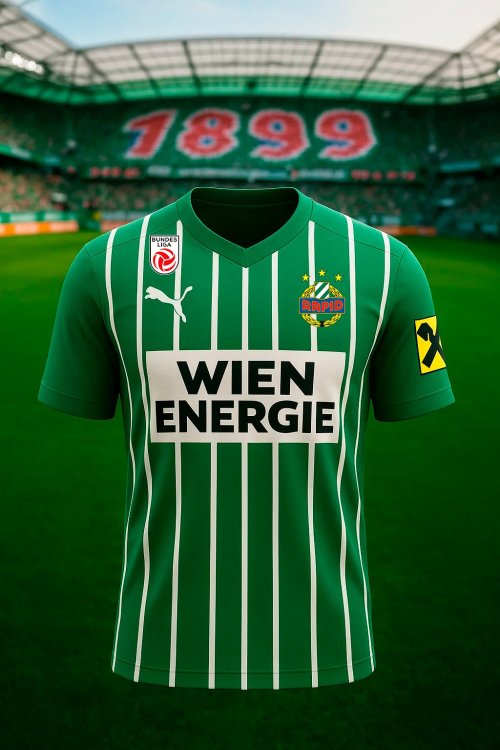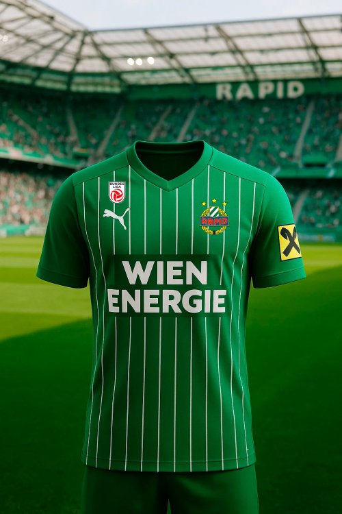 Diese Saison neigt sich ja bald dem Ende zu, Zeit also wieder für ein paar Entwürfe für das neue Trikot. Ich hab den ersten Entwurf dieses Mal in ChatGPT (genauer gesagt mit Dall-E) erstellt und danach noch mit Photoshop verbessert (Wappen und Sponsoren hinzugefügt und ein paar kleinere Details noch entfernt): Für alle die wieder eines erstellen wollen: Die richtigen Farben: Die Farbe Grün entspricht dem Farbcode 3415 CV, die Farbe Blau dem Farbcode 541 CV, die Farbe Rot dem Farbcode 1795 CV und die Farbe Gelb dem Farbcode Pantone Process Yellow CV und Schwarz dem Farbcode Pantone Process Black CV. Der Prompt bei ChatGpt war dieser hier: Alternativ kann man natürlich auch den Puma Trikot-Designer verwenden. So hier mal mein erster Entwurf, noch ned perfekt, ich weiß, aber mal ein Anfang.18 likes -