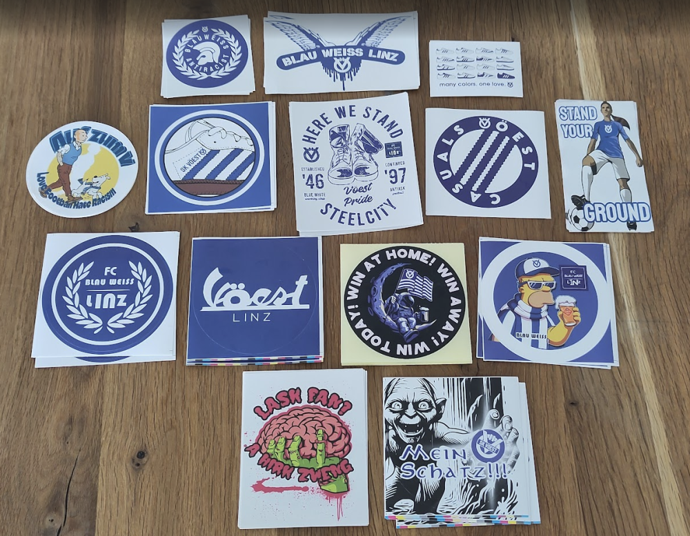 Danke unbekannterweise fürs Weiterleiten an den Pickerlmeister vom V, dass ich mehr als entzückt bin über einige/viele Pickerl, die ich in Linz gesichtet habe. Gestern wurde ich überrascht mit einem kleinen Präsent an feinsten, ausgewählten Exemplaren. Mir scheint, nun muss eine eigene Pickerlwall of SKV her Bärweißblau - Pezi und der V.12 likes -