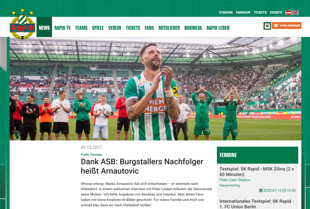 Schau, da sitzt ja nicht wer mitm Handy und filmt a bissl mit, ladet des hoch und fertig. Genau solche Ansichten sind es, die ein wenig das Hintergrundwissen zu dieser Berufssparte vermissen lassen. Eine gute Person mit Erfahrung für Social Media / Medien kostet dir min 60-70.000 im Jahr. Do your maths. Unser Fokus wird sich auch viel stärker in Zukunft wieder auf die eigenen Medien richten und weg von stumpfer Social Media Beschallung. Wir wissen sehrwohl, dass wir da weit weniger bieten können als die größeren Vereine. Es ist aber nicht anders wie beim Kader, man muss dann halt mit besonderen Themen rausstechen. Die glatte Dauerbeschallung gibts bei uns nicht, dafür ehrliche Berichterstattung aus dem Herzen des Vereins.24 likes