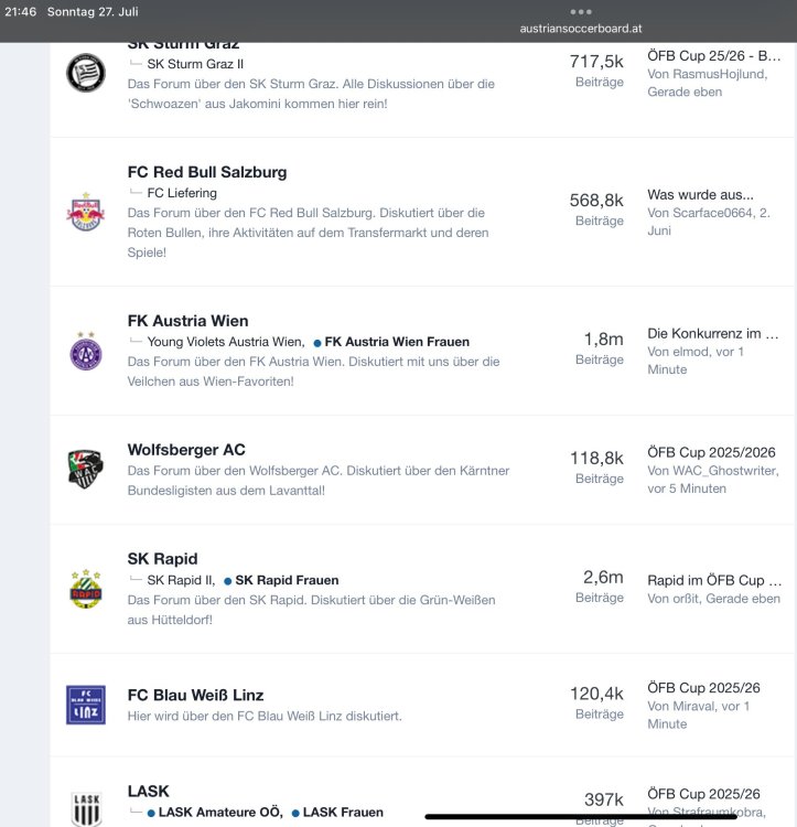 Aber jetzt ganz neutral und ganz ehrlich: Jedes Jahr erwischt es in der 1. Runde (oder später) einen Bundesliga-Verein. Warum? Nicht weil die Vorbereitung zwingend schlecht war, nicht weil der Amateurclub besser war, nicht weil beim Bundesligaverein unfähige Leute am Ruder sind, nicht weil die Profis das Spiel nicht zu 100% sondern nur zu 99% ernst nehmen, nicht weil bei manchen die Standards einfach Scheiße sind,…. Nein, weil das einfach hin und wieder passiert…natürlich wünscht sich das keiner, dass man sich blamiert, aber hin und wieder gewinnt der Underdog ohne auch nur eine gefährliche Offensivaktion zu haben…so auch vorgestern. Die Reaktion von DE und FF gleich eine Aussprache und ein Vormittagstrainung anzusetzen war richtig, weil solche Vorfälle unmittelbar nach deren Geschehen unmittelbar aufgearbeitet werden müssen. An alle DE-Rausrufer eine Frage: Was war sein Beitrag an der Dornbirn-Niederlage? Die Aufstellung? Die Taktik? Die Standards? Das Wetter? Sternenstaub? 95% der User hier haben über Koch, Harakate, Hofleitner, die Verlängerung der Leihen von Cipot und Jano sehe sehr positiv geschriebrn. Jetzt nach der ersten Pflichtspielniederlage passt alles wieder nicht? Vereinbaren wir eines? Grenzenloses Sudern (mit Niveau) bis Dienstag und dann voller, positiver Fokus auf den Meisterschaftsauftakt? Bitte - Danke - Bussi - auf die Roten 🔴⚪️21 likes