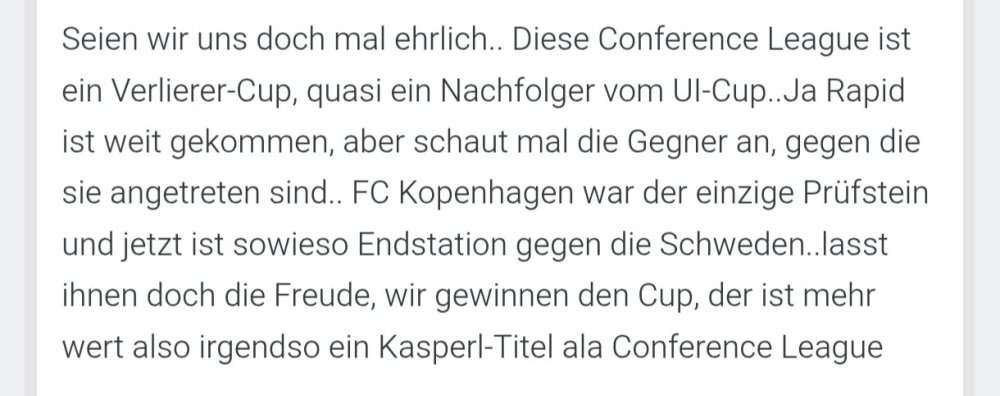 Es geht schon das Gerücht um, dass die Austria nach dem Cup und der Conference League am kommenden Wochenende auch aus der Meisterschaft ausscheidet.19 likes