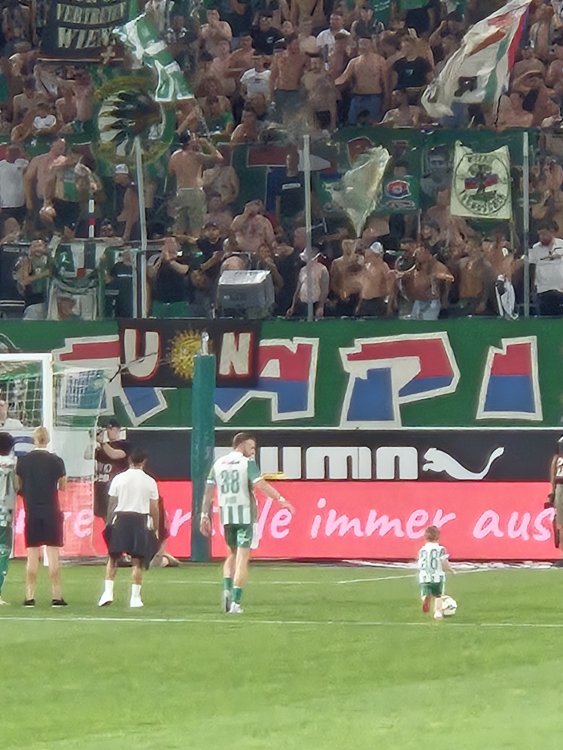 Leute beschäftigen wir uns doch HEUTE nicht mit diesem Sauhaufen aus Wien 10. Sollens rausschmeißen wens wollen, sollens alle das Handtuch schmeißen oder noch eine Vitaminspritze vom lieben Hrn. Hacker bekommen..... WAS KÜMMERT UNS DAS! Heute spielt Rapid, heute geht es um 6 weitere magische europäische Nächte. Heute wird das Dach wegfliegen und wir werden uns um 21:00 mit Freundentränen in den Armen liegen. Also - voller Fokus auf unsere Partie - OLLE DE HÄND AUFFE!!!!30 likes