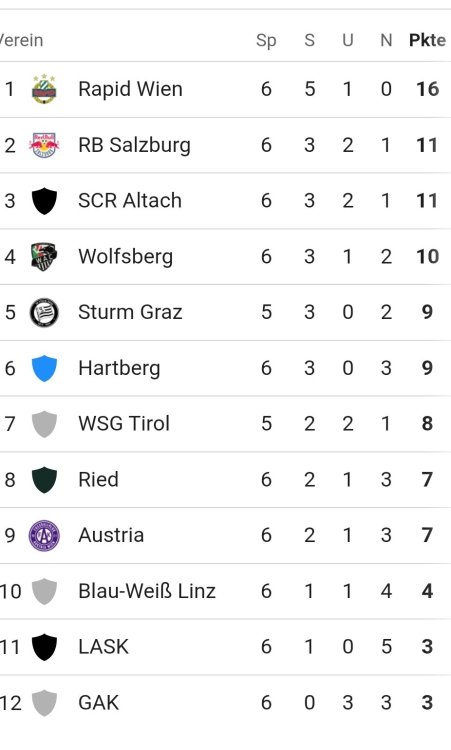 Nach 6 Runden schaut‘s so aus. Erst kommen wir und dann lange nichts. Da kann es uns völlig wurscht sein, wenn sich die Mitbewerber kreuz und quer Punkte wegnehmen. Die violette Großmäuligkeit rücken wir in 2 Wochen daheim gerade. Super Spieltag.17 likes