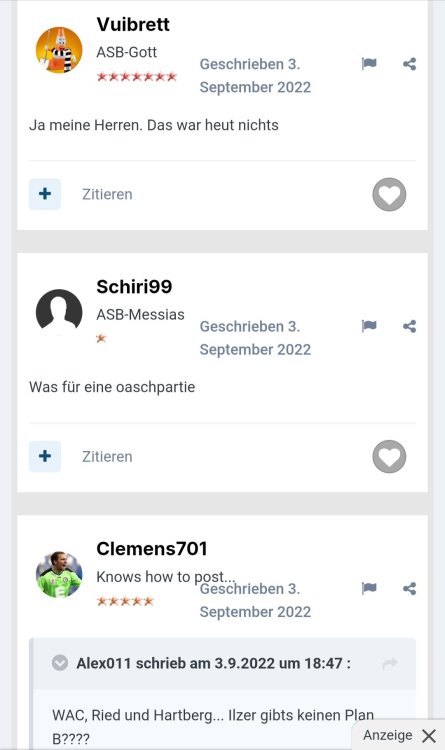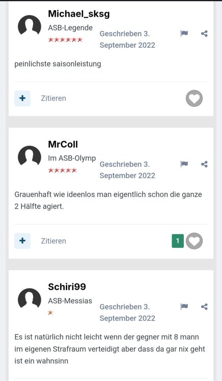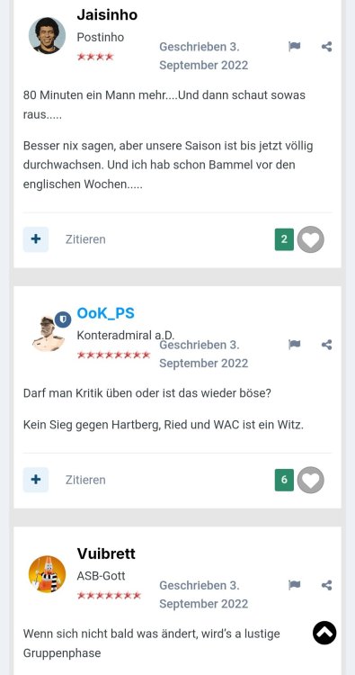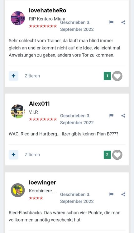 Ich will ja diese threadübergreifende "Grantler-expertigen Bankrotterklärer-Wir habens immer gewusst"-Party nicht stören oder crashen, aber muss mal etwas reinrülpsen: Vorab: 1. Wir haben gegen die Austria schlecht gespielt und keine Lösungen gefunden. 2. Die kommunikative Aussenwirkungen von Sturm ist irritierend und sehr ausbaufähig 3. Wir hätten mindestens einen IV (Abwehrchef) verpflichten müssen. Somit bitte alle "Schönredner"-Floskeln stecken lassen. Ich sehe die Probleme (mehr als aufgelistet), bin aber trotzdem entspannt. Warum? Bringt nichts jetzt, der vorherrschenden Negativstimmung entgegenzutreten. Es wird im eigenen Saft derzeit gesuhlt. Und was erschreckend (das eigentliche erschreckende) ist. Ihr macht das scheinbar mit Freude. Aber jetzt was anderes: Das hab ich für euch rausgesucht. Sturm - Hartberg vor über 3 Jahre Was auffällt: 1. Immer die gleichen. 2. Es wirkt chronisch. 3. Egal wer am Ruder (Trainer, SD) ist - "es is oasch". 4. Ihr würdet fehlerlos alles besser machen. FAZIT: WEITERMACHEN. IHR SEID DIE TOLLSTEN.16 likes