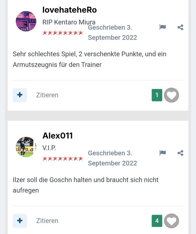 Zum Pomsi-Bär möcht ich schon noch sagen (weils mich wirklich gestört hat): Bei Siegen war das seiner Meinung nach immer sein Verdienst, die Niederlagen dagegen waren ausschließlich den Spielern zuzuschreiben. Mit so einem Charakter wird das nirgends lange gut gehen. PS: Spielerisch fehlt uns seit dem Aufstieg einfach ein guter 10er. Der Lichti ist dafür einfach zu "kasig".10 likes -