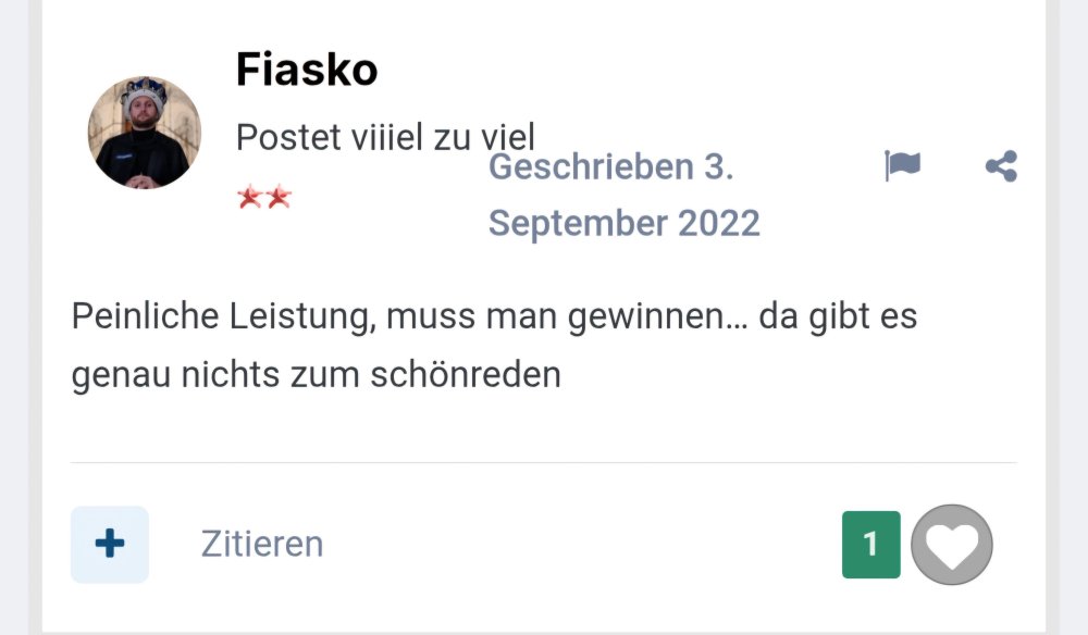Na, der Transfer eines 3er-Goalies war sicher net der Negativhöhepunkt, weder gehaltstechnisch noch sonst in irgendeiner Form.14 likes -