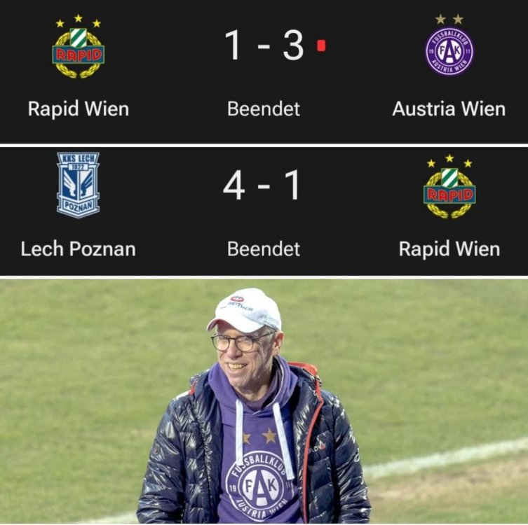 Das Interview von Peter Stöger bei Canal+ is als Fan schwer hinzunehmen. Er sah nur "zwei Spiele die net optimal waren zuletzt". Kritisiert die Erwartungshaltung hinsichtlich des Derbies und des Duells heute. Er scheint nicht verstanden zu haben, dass die Fans vor allem die Art und Weise der Niederlagen kritisieren und nicht das man mal verliert. Bissi gar viel jammern übers Außen is das.9 likes