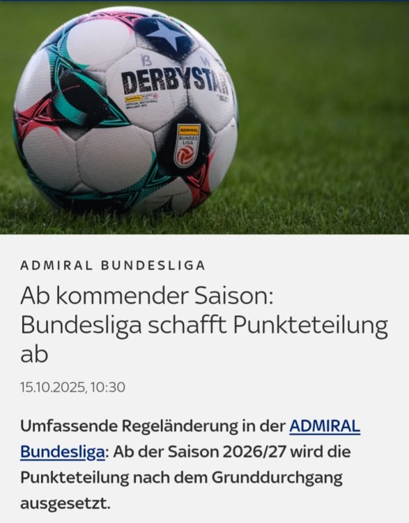 Die Punkteteilung wird ab kommender Saison abgeschafft https://www.skysportaustria.at/ab-kommender-saison-bundesliga-schafft-punkteteilung-ab/12 likes -