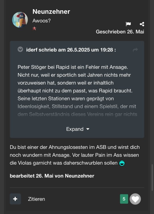 Wo sind eigentlich die ganzen Rapidler hin die uns im Konkurrenz Thread erklären wollten wie die Welt rennt?12 likes -