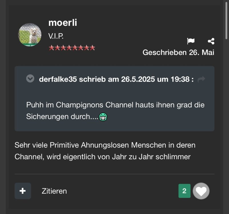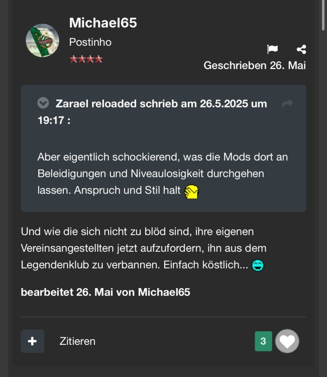 Das einzige, was der Stöger heute gut gemacht hat, selbst voran gehen und auch die Mannschaft da vor den Block stellen. Wenn die Spieler es schon so und von ihm nicht checken, dann sollen sie sich wenigstens dort hin stellen und anhören, dass es Menschen gibt, denen so eine Scheißleistung und Lustlosigkeit nicht wurscht ist. Auch das hilft ihm natürlich nichts, wenn er es nicht schafft eine spielerische Linie rein zu kriegen und von selbst es hin bringt, dass die Mannschaft hundert Prozent gibt, aber das gehört in andere Threads.14 likes -