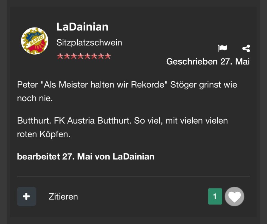 Wer 1k auf Rapid Meister wettet der gehört ohnehin besachwaltet.15 likes