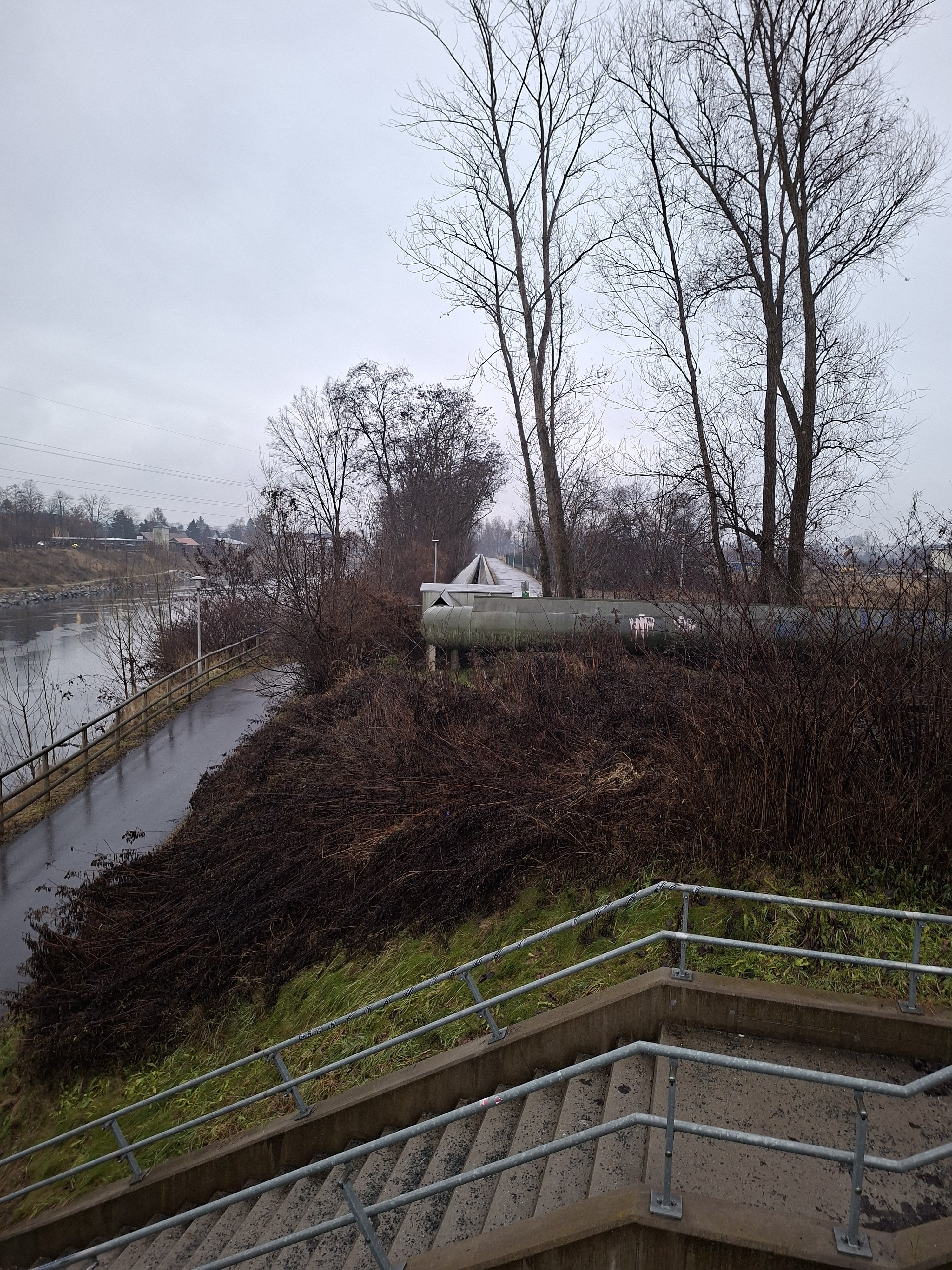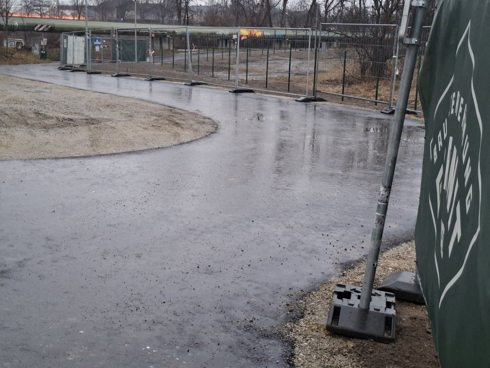 Mittwoch, 4.2.2026 Nach einer OP, Krankenhausaufenthalt, Krankenstand und mit heutigen Tag absolvierter Reha fühlte ich mich für einen Spaziergang Richtung Puntigamerbrücke bereit. Und ein Abstecher zum Bauplatz ging gleich mit. So trist wie das Wetter und die sportliche Performance unseres Herzensverein - ja so trist präsentiert sich der Bauplatz von der Weite. Man erkennt Baucontainer durch's Geäst und links einen Kran. Das ist so spektakulär wie Sturm's derzeitige Auftritte. Doch schaut man ein wenig genauer, dann hat sich doch etwas getan. Der ehemalige 2m breite und dunkle Radweg ist einer frisch asphaltierten Straße gewichen. Und die geht bis zur Firma XAL runter. Dort sieht man auch schon vorbereitete Beleuchtungssteher. Man wird doch nicht für genug Licht auf einmal sorgen, Stadt Graz? Der ehemalig kriminelle Radwegaufstieg zur Puntigamerstraße ist natürlich auch einer breiteren Asphaltierung gewichen. No, na, net. Ist es ja die gleiche Straße wie oben. Auf Grund dessen habe ich Blut ( schwarzes) geleckt und bin zum Bauplatz gewandert. Und siehe da, da wurde ja doch etwas geschepft. Die Baugrube beim Kran tat sich in aller Pracht auf. Bitte beachtet an der Hinterseite der Baugrube die tolle Treppe. Böse Zungen behaupten, die ist für Seddy. Damit er nicht runterstolpert. Als Moral von meinem Spaziergang nehme ich folgendes mit: "Ist der Moment auch noch so trist und denkt man nur an's Schlimmste und an Stillstand - ja genau dann erscheint eine frisch asphaltierte Straße, eine imposante Baugrube und eine tolle Abgangstreppe". Auf die Schwoaz'n.21 likes