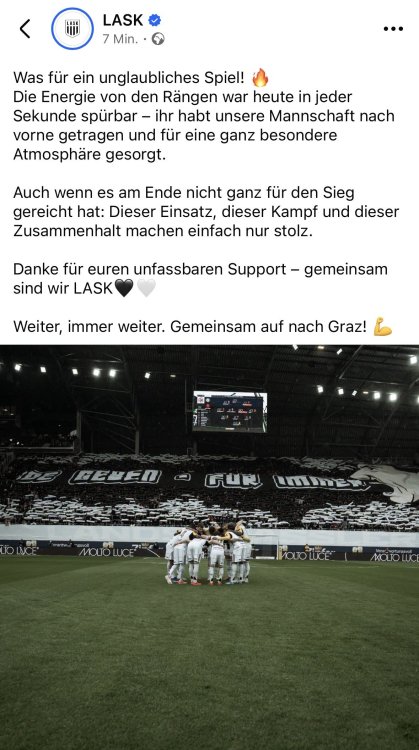 Ich könnte aus meiner Sicht heute keinem Einzigen etwas vorwerfen. Hatte große Bedenken bei Ahoussou, finde der hat das heute aber sogar gut gemacht. Gefightet hat jeder, wir müssen leider extrem viel Aufwand betreiben um das Momemtum auf unsere Seite zu ziehen. Glaub in Summe hat bisher im OPO keiner Hartberg so dominiert wie wir inkl. genügend Chancen. Extrem nervig ist einzig und allein das ständige Nachlaufen eines Rückstands. In jedem Spiel, 1. Chance Gegner und 0:1. Wir müssen einfach die Führung erzwingen dann geht es deutlich leichter. Waren ja auch heute gute Aktionen dabei nach den jeweiligen Ausgleichtreffern. Aja und eines noch, Yussi ist eine Augenweide zum Zusehen. Weiter so Bursche!23 likes