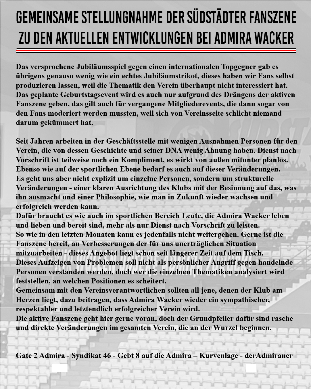 Zuerst wurde über die Szene geschimpft, weil sie boykottiert und die Gründe dafür nicht verstanden wurden oder verstanden werden wollten. Jetzt wird darüber geschimpft, dass die Szene zurückkehrt, obwohl die Zugeständnisse dafür zu gering waren. Einfach herrlich hier. Ich selbst sehe mich nicht als Teil der Szene, bin aber regelmäßig auf der ASK zugegen. Ich habe zugehört und die Gründe für den Boykott verstanden, die Meinung aber nicht gänzlich geteilt und sie dennoch akzeptiert. Ich freue mich, dass die zurück ist, weil es so auf der ASK deutlich mehr Spaß macht. Es steht mir aber nicht zu, über ihre Motive zu urteilen. Wie ich hier schon mehrmals geschrieben habe: Die Szene wird wissen, ob und wann sie wieder zurückkommt und das ist allein ihre Entscheidung. So wie es auch bei mir eine persönliche Entscheidung ist, ob ich ins Stadion gehe oder nicht, ob ich zu einem Auswärtsspiel fahre, oder nicht.13 likes