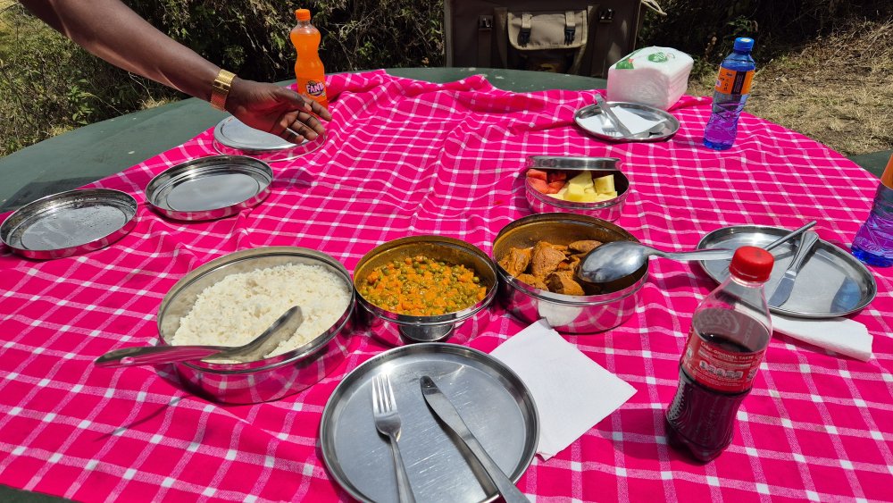 Das war alles gut und unproblematisch. In den Lodges gibt es überwiegend Buffets mit einigem an Auswahl, mittags Picknick im Nationalpark mit Proviant von der Lodge - meistens Fleisch von Huhn oder Rind mit Gemüse, Reis oder Nudeln. Siehe Beispielfotos