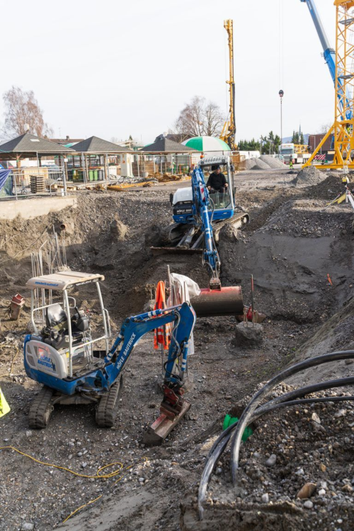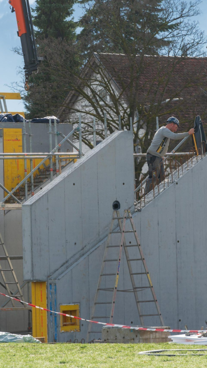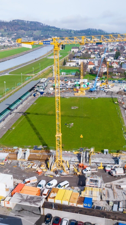 Neue Heimstätte von Austria Lustenau wächst und wächst. Arbeiten voll im Plan. Markus Krautberger [email protected] LUSTENAU 116 Tage oder etwas mehr als 16 Wochen sind vergangen, seitdem der Baustart zum Neubau des Reichshofstadions am 20. November 2023 eingeläutet wurde. War es anfangs großteils die Pilotiermaschine, die die ersten Arbeiten verrichtete und rund 180 Betonpfähle zwischen 14 und 16 Meter in die Tiefe bohrte und mit Beton füllte, hat sich mittlerweile auf der Großbaustelle in der Schützengartenstraße 1 zu Lustenau einiges getan. Die nächsten Schaltafeln werden per Kran bewegt. Auf der Südseite ragt bereits der erste Eckpfeiler gut fünf Meter aus dem Boden, dazu stehen schon die ersten Wände, die die Aufgänge im Auswärtssektor markieren. Weiters sind bereits zwei weitere Fundamente an den Ecken mit Beton gefüllt, am vierten Eck, dem vor dem Glashaus, wird aktuell noch gearbeitet. Drei Baukräne sind genug Damit die Arbeiten, die laut den Projektleitern der Gemeinde Lustenau, Markus Waibel und Christian Steiner voll im Plan sind, auch auf der Nordseite Fahrt aufnehmen, wurde der dritte große Baukran aufgestellt. “Das war es dann aber auch mit den großen Kränen, drei reichen fürs Erste”, erklärt Waibel den VN bei der exklusiven Baustellenbesichtigung. Der erste Eckpfeiler wächst bereits in die Höhe. Links des Eckpfeilers gut zu sehen: Die ersten hochgezogenen Wände, zwischen denen der Aufgang in den Auswärtssektor entsteht. Die Fundamente unter der zukünftigen Nordtribüne sind ebenfalls schon gelegt, aber nicht mehr zu sehen, weil bereits mit der nächsten Schicht Schotter abgedeckt. “Der Plan sieht vor, dass sowohl von der Südseite als auch von der Nordseite her in Richtung Mittellinie gebaut wird und es dann zum ‚Treffen‘ und zur Fertigstellung kommt”, erklärt Waibel die Vorgangsweise bei dem Großprojekt ‚Reichshofstadion Neu‘.” Projektleiter Markus Waibel im Gespräch mit VN-Redakteur Markus Krautberger. Arbeit am “heiligen” Rasen Gut zu erkennen: die Rasenheizung. Bis zur Grasnarbe wird das Spielfeld versetzt. Der nächste große Posten, dessen man sich annimmt, ist der “heilige” Rasen, auf dem die Austria ihre, so Gott will, Bundesligaspiele absolvieren wird. Da hat man sich aufgrund der Bodenbeschaffenheit gegen die Verlegung eines Rollrasens entschieden. Waibel dazu: “Es wird ein Saatrasen werden, den wir bis Mai so weit hergerichtet haben, dass wir ihn ein Jahr lang hegen und pflegen können, um beim ersten Match den perfekten Spieluntergrund zu haben.” Das Spielfeld selbst wird um 1,20 Meter in Richtung der Haupttribüne verlegt und 20 Zentimeter nach der Outlinie werden wir mit Kunstrasen arbeiten. Da halten wir uns an das Stadion in Altach, die eine sehr gute Lösung mit dem Kunstrasen gefunden haben”, erklärt der Lustenauer Projektleiter weiter. Die Arbeiten für den letzten Eckpfeiler sind voll im Gange. Neues Vereinsheim und Büro im Glashaus Auch am ehemaligen Nachwuchsheim wird gearbeitet, daraus entsteht das neue Vereinsheim der Grün-Weißen. Doch nicht nur am neuen Stadion wird gebaggert und betoniert, auch beim Nachwuchsheim geht man ans Eingemachte. Bis Ende April soll dieses als neues Vereinsheim der Austria glänzen, dafür wird derzeit fleißigst innen wie außen gearbeitet. “Das wird ein Schmuckstück, auf das sich die Austrianer freuen können”, erzählt Austria-Geschäftsführer Vincent Baur voller Vorfreude auf den neuen Treffpunkt der Grün-Weißen, während er sich in seinen Bürostuhl im neu bezogenen Austria-Büro fallen lässt. Seit Montag laufen die Umzugsarbeiten vom Büro am Blauen Platz in Richtung Glashaus, wo nun die Büros der Mitarbeiter und der neue Fanshop entstanden sind Der neue Fanshop und die Büros der Austria befinden sich nun im Glashaus.