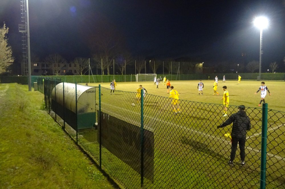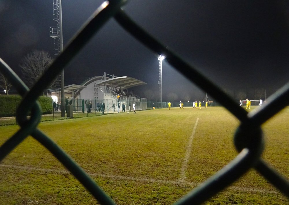 Von Fontanafredda sollte unsere Reise weiter in Richtung Portogruaro gehen. Anfänglich war es geplant den Platz den Fünftligisten APC Chions zu besuchen, zumal der Verein vor sogar nicht allzu langer Zeit noch in der Serie D gespielt hat. Doch am Samstag stand in den Ansetzungen als Spielort Villotta di Chions und so begaben wir uns in den zwischen der Autobahnabfahrt und Chions liegenden Ort. Da man von der Autobahn bereits das eingeschaltete Flutlicht des Campo Sportivo Villotta di Chions sah, war auch klar, dass diese Partie der 15.Runde der Juniores Regionali U19 in der Region Friuli-Venetia Giulia dort stattfinden wird. Es ist zugleich die Heimstätte des AC Villotta, der seinerseits in der siebten Liga spielt. Dieses Stadion ist jetzt kein San Siro, verfügt aber immerhin über eine kleine überdachte Tribüne bei der Seite zur Sporthalle, auf der sich auch der Zugang zu Stadion und eine Bar befindet. Bei Einbruch der Dunkelheit finden sich immerhin 50 Besucher auf diesem Sportplatz ein, um dem Spiel beizuwohnen. Der APC Chions trifft als Tabellenfünfter auf das abgeschlagene Schlusslicht vom ASD Roianese. Da die Gäste gerade einmal zwei Punkte auf dem Konto haben, ist die U19 von Chions in dieser Begegnung auch klarer Favorit. Von Anfang an geht es lediglich in eine Richtung und nach wenigen Minuten sind auch schon einige Treffer für die Gastgeber gefallen. Im Laufe der ersten Spielhälfte begeben wir uns auch auf die gegenüberliegende Seite des Sportplatzes, auf der man von einem Hügel in kleiner Erhöhung dem Spielgeschehen folgen kann. Wir machen unsere Bilder und begeben uns wieder auf die Tribünenseite. Bald sollte hier Pause sein und Chions geht mit einem Zwischenstand von 8:0 zurück in die Kabine. Manchmal fielen hier die Tore schon bitter, denn einmal ist der Tormann der Gäste auf dem Weg den Ball festzuhalten, aber sein Verteidiger klärt für ihn, allerdings genau vor die Beine des Gegners, der dann mühelos einschieben kann. Zur zweiten Spielhälfte wechselt Chions einige Akteure, wodurch der Spielfluss ein wenig unterbrochen wurde. Die Tore fallen zwar nicht mehr so schnell wie in den ersten 45 Minuten, aber Roianese kommt so gut wie nicht vor das Tor der Gäste. Dies lässt Matthias zur Aussage verleiten, dass er sich bei einem Treffer der Gäste beim Abendessen die Pizza mit den Pferdefleischstreifen bestellen wird. Wenige Augenblicke später hat Roianese eine Chance und Alessio Montella schließt im Stile eines Großen ab. Es sollte die einzige Chance des Roianeses sein, denn danach spiel nur mehr Chions. Nach 90 Minuten stehen 13 Tore auf der Seite der Gastgeber zu Buche diese teile sich auf Bajo und Mies mit jeweils vier Treffern sowie Vazzoler, Krasniqi, Florea Daniotti und Fakhri mit jeweils einem Treffer auf. Für uns geht es danach weiter nach Chions, wo wir in der Pizzeria Matthias einkehren und Matthias Alessio Montella verflucht, denn er muss natürlich die Pizza mit den Pferdefleischstreifen bestellen. Unser Fahrer Alex macht dies sogar aus freien Stücken und so tauschen wir mit ihm ein Stück dieser Pizza, um auch eine Kostprobe von dieser Spezialität zu erhalten. Nach dieser nicht alltäglichen Einkehr geht es für uns in das Quartier für die Nacht, wo wir genau rechtzeitig zum Beginn der Übertragung des Topspiels der italienischen Damenvolleyball-Liga kommen. Busto Arsizio hatte Novara zu Gast und dass dieses Spiel über fünf Sätze ging, war im Sinne aller Beteiligten. So soll ein Abend beim Groundhopping in Italien ausklingen. APC Chions - ASD Roianese 13:1 (8:0) -